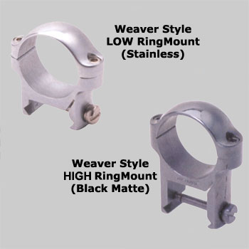 Professional Weaver style, all steel, quick detach ringmounts. For Weaver style bases, law enforcement, military and competition use. Fully machined steel ringmounts offer greater rigidity with integral recoil stop. QD-quick detatch, precision return to zero.