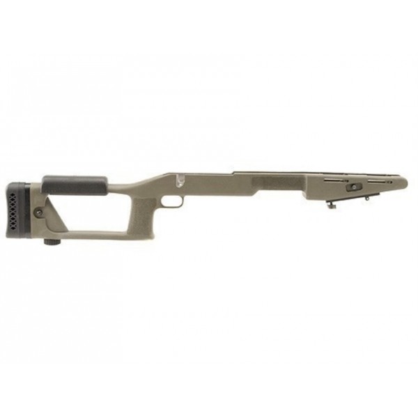 The Ultimate Sniper Stock features a completely adjustable cheekpiece and buttpad for a perfect fit. A rear elevation screw, coupled with an angled forend, provides precise elevation adjustments.