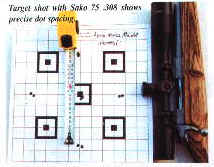 Target shot with Sako 75 .308 shows precise dot spacing.